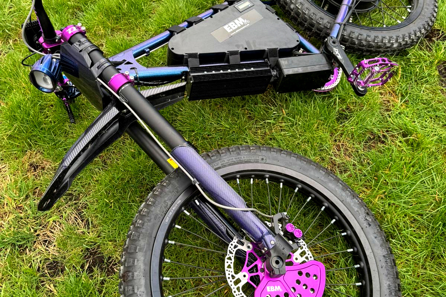 This bike has pretty much everything you could want from a custom powdercoat paint job, DNM suspension, ECK 3000W Conversion Kit, YF 60A controller and loads of high quality Hope parts to match.